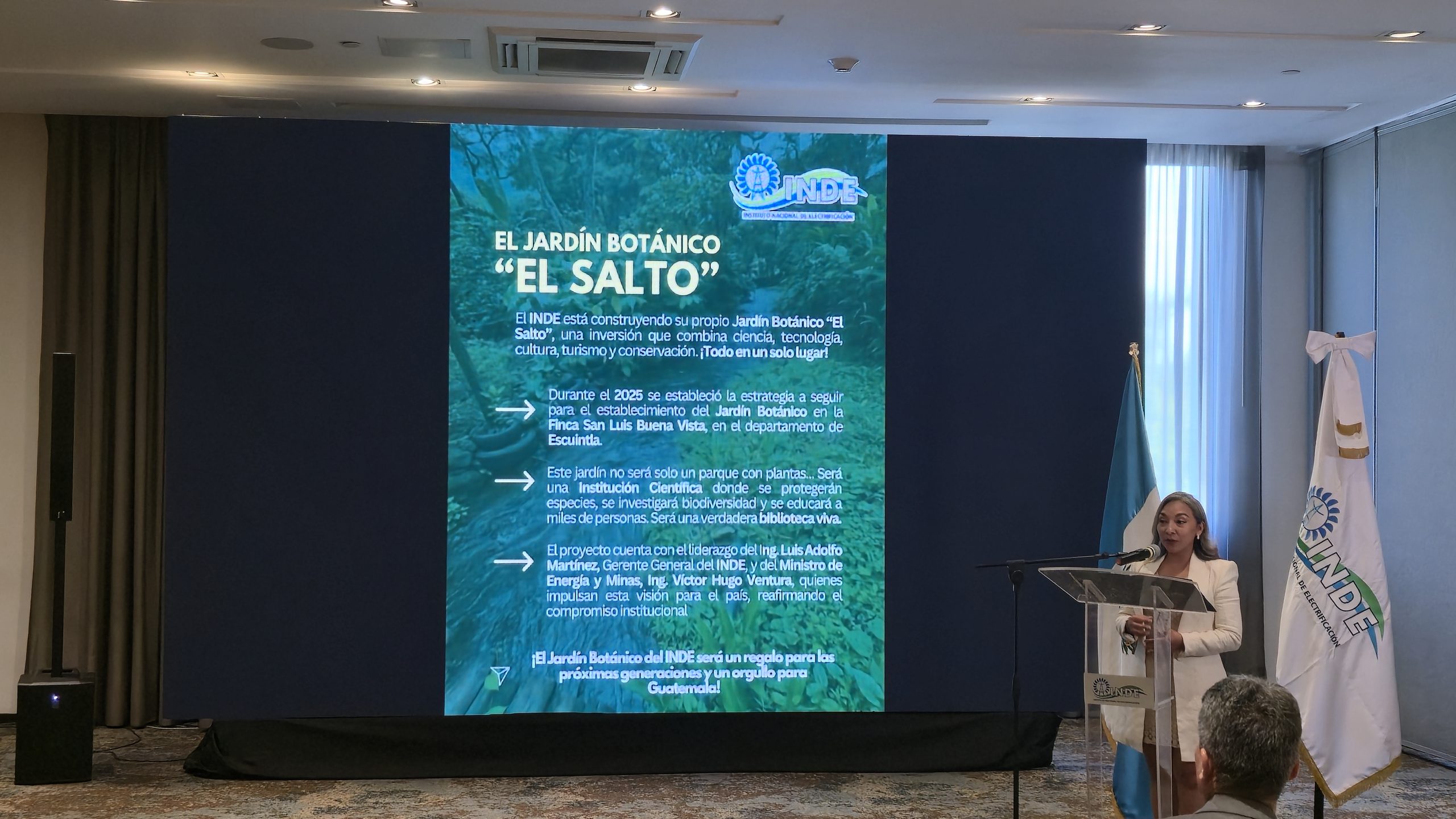 Además de las cifras duras de los INDE resultados 2025, el evento resaltó el compromiso ambiental de la institución. En Escuintla, el INDE impulsa la creación del jardín botánico El Salto, ubicado en la finca San Luis Buenavista. Este proyecto será una “biblioteca viva” dedicada a la conservación de especies, la investigación de biodiversidad y la educación ambiental, con senderos, aviturismo y espacios recreativos que se desarrollarán por fases a partir de 2026.
