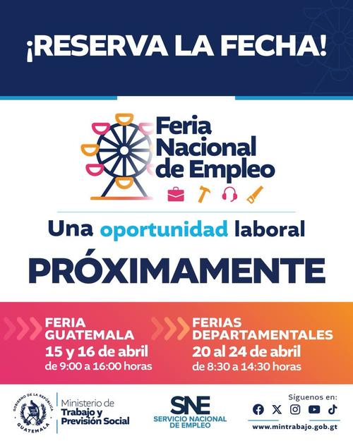 La feria nacional del empleo se prepara como uno de los eventos más relevantes para la generación de oportunidades laborales en Guatemala, con actividades programadas tanto en la capital como en el interior del país, enfocadas en conectar a la población con distintas opciones de trabajo.
